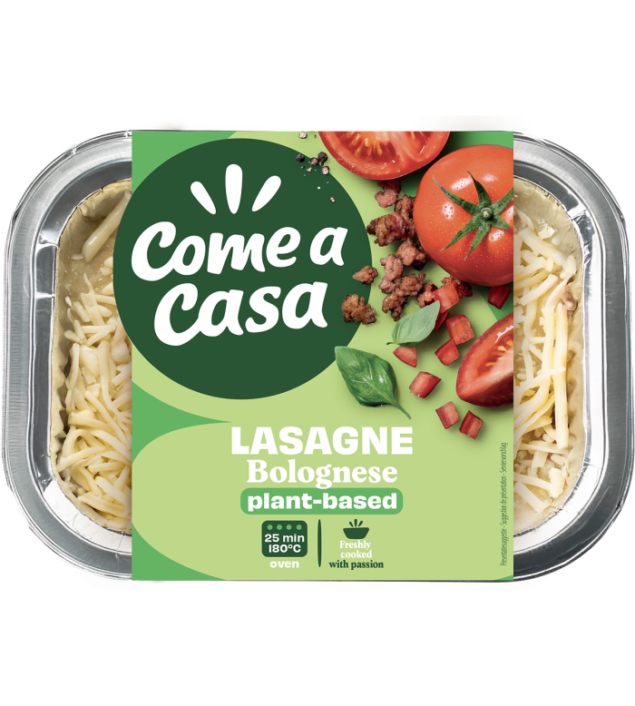 Een heerlijke lasagne bolognese maar dan plantaardig. 4 lagen plantaardige pasta gevuld met een bolognesesaus op basis van erwteneiwitten en romige bechamel op basis van linzen & bloemkool, afgewerkt met een laagje plantaardige kaas voor een gratin.